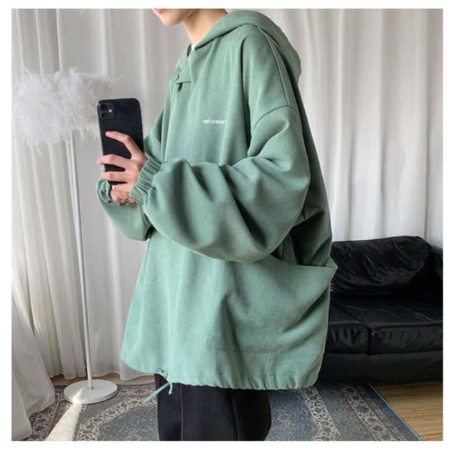 | シンプルなデザインなので、コーデのアレンジが効くのが魅力です。 生地は薄すぎず厚すぎない適度なスウェット地で秋・冬・春と長いシーズンご着用いただけます フロントネックのボタンの開閉でボリュームネックデザインにもなります ビックシルエットなので1枚着でも現代的な韓国ファッションを演出してくれます | |
