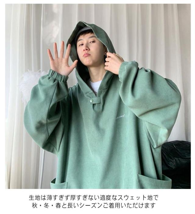 プルオーバーパーカー プルオーバーパーカー パーカー メンズ メンズパーカー ボリュームネックパーカー 暖かい ドルマンスリーブ トレーナー ストリート 長袖 大きいサイズ スエット パーカー ゆったり 秋 春 冬