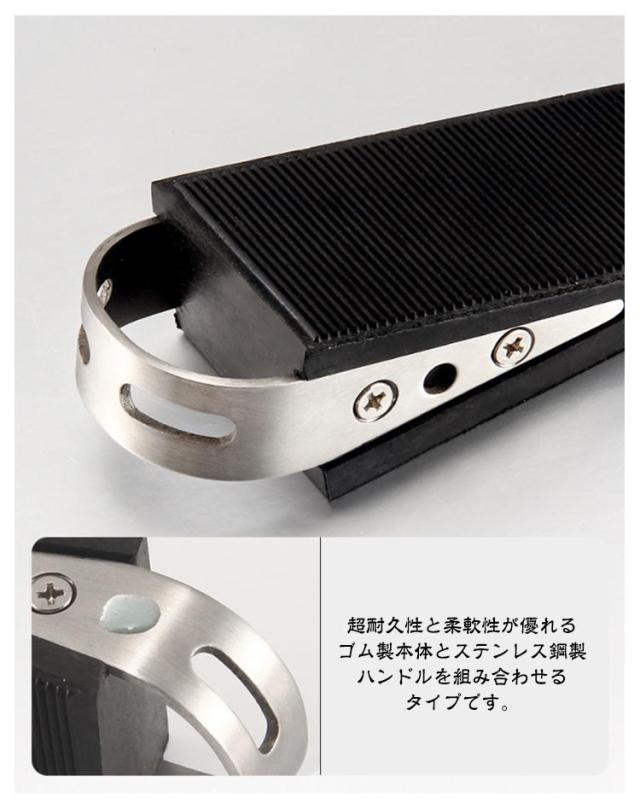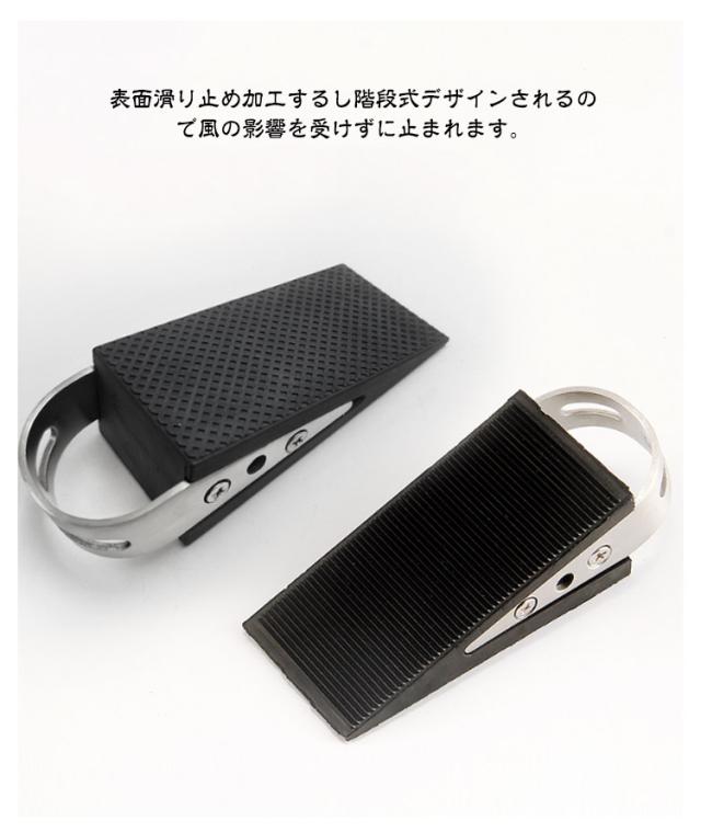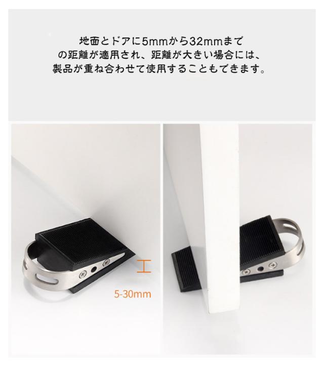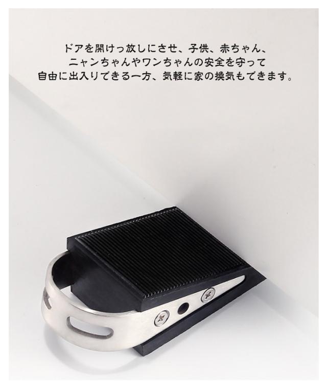 | 置くだけ! ドアストッパー 【2個セット】 超耐久性と柔軟性が優れるゴム製本体とステンレス鋼製ハンドルを組み合わせるタイプです。 表面滑り止め加工するし階段式デザインされるので風の影響を受けずに止まれます。 ドアを開けっ放しにさせ、子供、赤ちゃん、ニャンちゃんやワンちゃんの安全を守って自由に出入りできる一方、気軽に家の換気もできます。 地面とドアに5mmから32mmまでの距離が適用され、距離が大きい場合には、製品が重ね合わせて使用することもできます。 | |