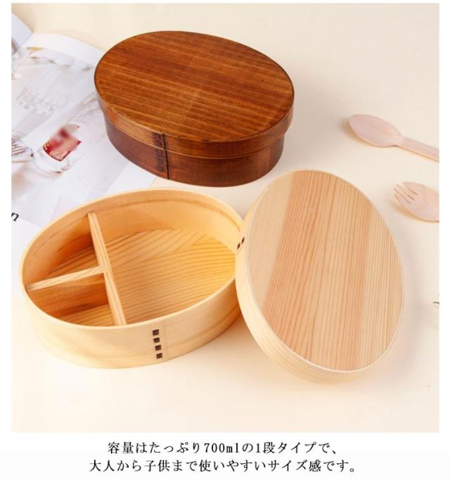 曲げわっぱ ピクニック お弁当箱 700ml 子供用 弁当箱 大容量 ランチボックス 大人用 1段 運動会 女の子 男の子 小判型 T字仕切り お弁当 お洒落 食器 遠足 曲げわっぱ お花見 プレゼント 通勤 通学