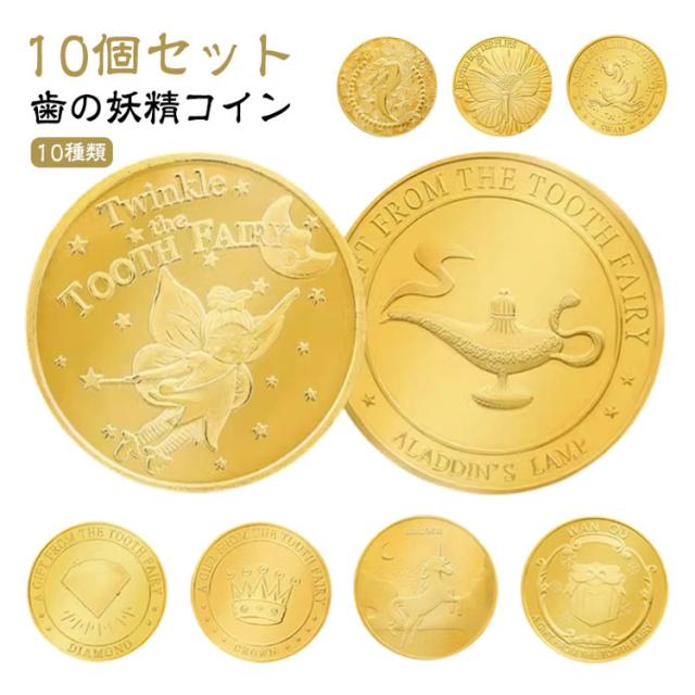 記念メダル 金貨 歯の妖精コイン 歯 コイン 【10個セット】 妖精 【10個セット】 歯の妖精 バラエティ 乳歯 妖精 メダル トゥースフェアリー 金貨 記念 お子様喜ぶ 色あせなし 歯と交換するコイン 裏面には10種類の柄がある