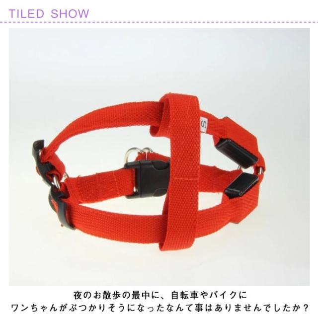 | 夜の散歩で愛犬の安全を守るのにオススメ 夜のお散歩の最中に、自転車やバイクに ワンちゃんがぶつかりそうになった なんて事はありませんでしたか? 光るハーネスは暗くても抜群の視認性がありますので 夜のお散歩でペットの安全を守るのに超オススメ! | |