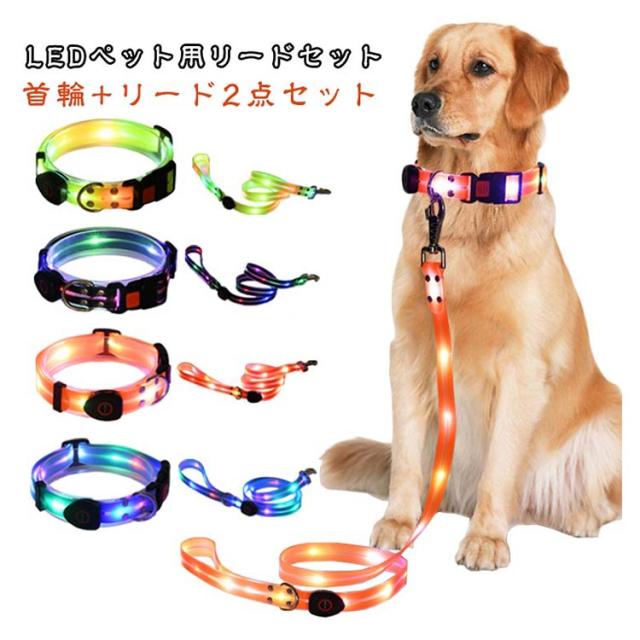 光る USB充電式 首輪 リードセット 小型犬 犬 LED光るリード 光る首輪 リードセット 光るリード サイズ調整可能 柔らかい 光る 夜間散歩 無臭 夜散歩ライト 軽量 安全対策 視認性 子犬 犬 中型犬
