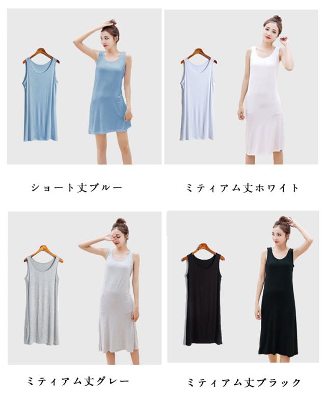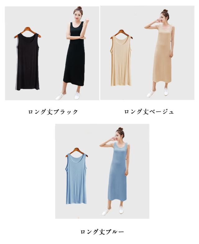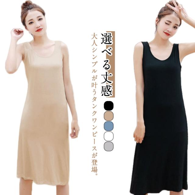 インナーワンピース レディース 送料無料 タンクトップ 春 選べる丈 透け防止 送料無料 ミニ ペチコート ロング 夏 インナー ワンピース ノースリーブ シンプル 無地 カジュアル 部屋着 ルームウェア パジャマ スリップ