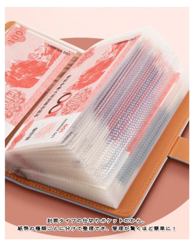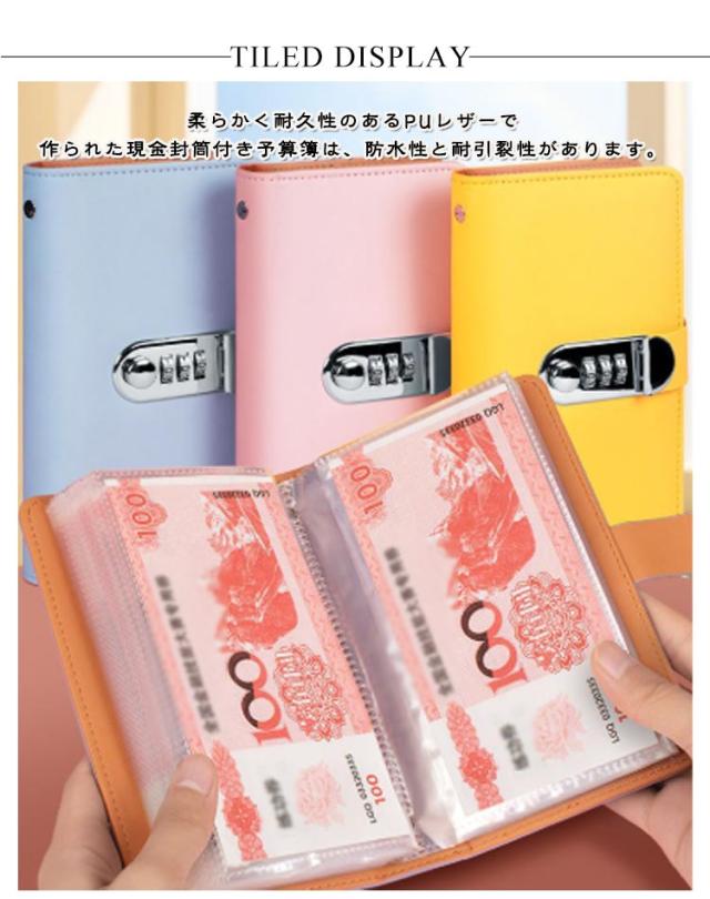 | 折らずに収納できる!隠し金庫にもなるお札バインダーです。 柔らかく耐久性のあるPUレザーで作られた現金封筒付き予算簿は、防水性と耐引裂性があります。 ダイヤルロック付きだから大切なお金をしっかりガードし、ご家族や第三者による誤った開封・使用を防止。 封筒タイプの仕切りポケットだから、紙幣の種類ごとに分けて整理でき、管理が驚くほど簡単に! おしゃれな封筒貯金スタイルで、現金をしっかりと仕分けられます。 貯金を始めるのに最適なアイテムで、毎日の節約が楽しくなります! | |