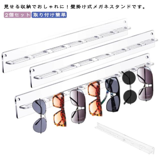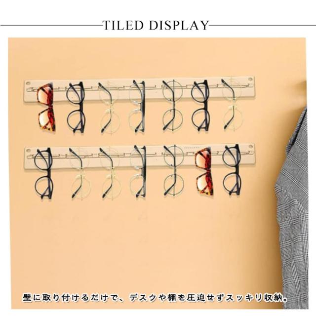 メガネスタンド コンパクト 眼鏡スタンド 壁掛け 2個セット 展示スタンド 省スペース 7本掛け サングラススタンド 眼鏡掛け アクリル メガネ収納 サングラス収納 取り付け簡単 ディスプレイ 自宅 店舗 業務用 北欧風