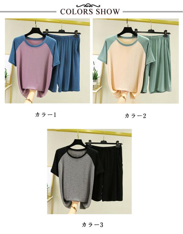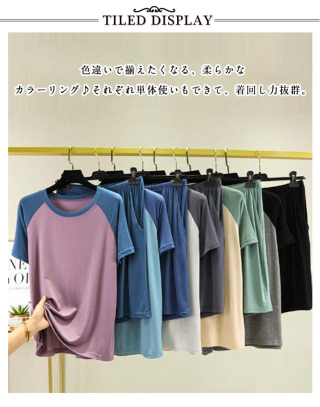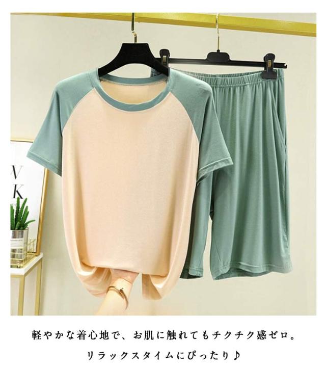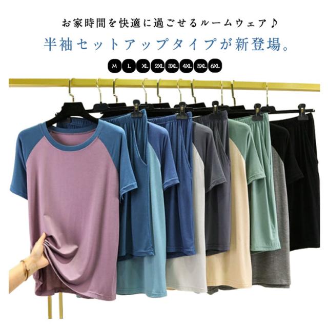 送料無料 セット ショートパンツ 夏 上下 Tシャツ レディース 半袖 リラックス 短パン パジャマ ルームウェア 寝巻き ナイトウェア 部屋着 通気性 薄手 柔らかい 旅行 送料無料 お出かけ おうち時間 楽ちん ゆったり