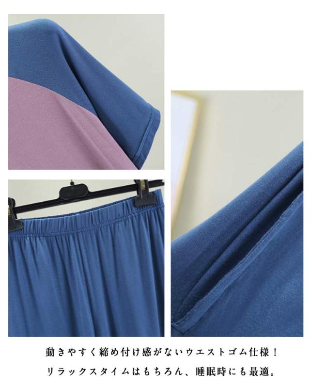 | 心地よくリラックス♪着心地バツグンなルームウェア。 首元が詰まりすぎないトップス&ウエストゴムでストレスなく履けるパンツのセット。 トップスはゆったりめの幅と腰回りが隠れる丈感。 ボトムスは、短すぎないハーフ丈。 余裕を持たせたフォルムで、窮屈感ゼロ。家事なども捗り、そのままお布団で休んでもOK。 涼しく快適に過ごせて、おうち時間に最適。 | |
