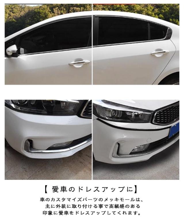 | 【車用メッキテープ】 幅6mm/8mm/10mm/12mm/15mm/18mm/20mm/25mm/30mm 【長さ5M 3M】 【 愛車のドレスアップに♪ 】 車のカスタマイズパーツのメッキモールは、主に外装に取り付ける事で高級感のある印象に愛車をドレスアップしてくれます。シルバーのシンプルなデザインで、様々な色や形の車にも相性が良く馴染みやすくなっております。さらに擦れやすい場所の傷つき防止や、隙間隠しなどの役割も可能です。粘着テープで貼るだけのお手軽作業でドレスアップしていただけるため、初心者の方でも安心してご利用頂けます。 【 自由自在にフィット! 】 PVC素材で柔軟性に優れており、平面でも曲面でもフィットするため自由自在にドレスアップしていただけます。また、幅と長さが異なる11種類のタイプをご用意しております。長さはハサミ等で調節していただけるため、幅広く様々シーンで活躍します。お好みに合わせて11種類の中からお選びください。水にも強いため、雨の日や洗車の際も安心してご利用頂けます。 【 取り付け方法 】 本製品の取り付け方法は次の通りです。1貼り付ける場所の汚れや油分をしっかりと拭き取り取り除く。3貼り付け場所に合わせてカットする。3粘着テープのシールを剥がし、ズレないようにゆっくりと貼り付ける。4しっかりと圧をかけて抑えて剥がれてこないようにする。5メッキ面の保護用剥離紙をはがして作業完了。※作業は温かい日中に行うと効果的です。繰り返しの張り直しは粘着力が低下するためご遠慮ください。 【 様々なシーンで活躍します♪ 】 本製品は、内装や窓、ミラー、バンパーなど外装のワンポイントなど様々なシーンで活躍するアイテムです。貼るだけのお手軽作業ですのでぜひご活用ください。 | |