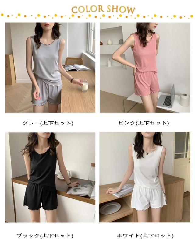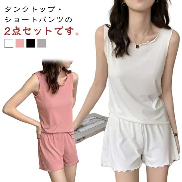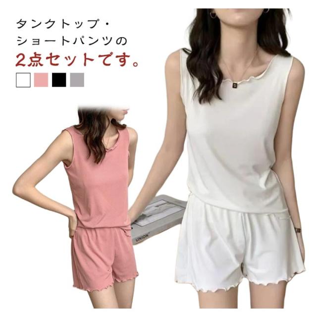 上下セット 夏用 袖なし 上下セット レディース 短パン ルームウエア ノースリーブ タンクトップ ショートパンツ セットアップ ハーフパンツ 婦人 ウエストゴム 無地 部屋着 寝間着 女性 ズボン 大人 おしゃれ イージーウェア シンプル ゆったり ナイトウェア