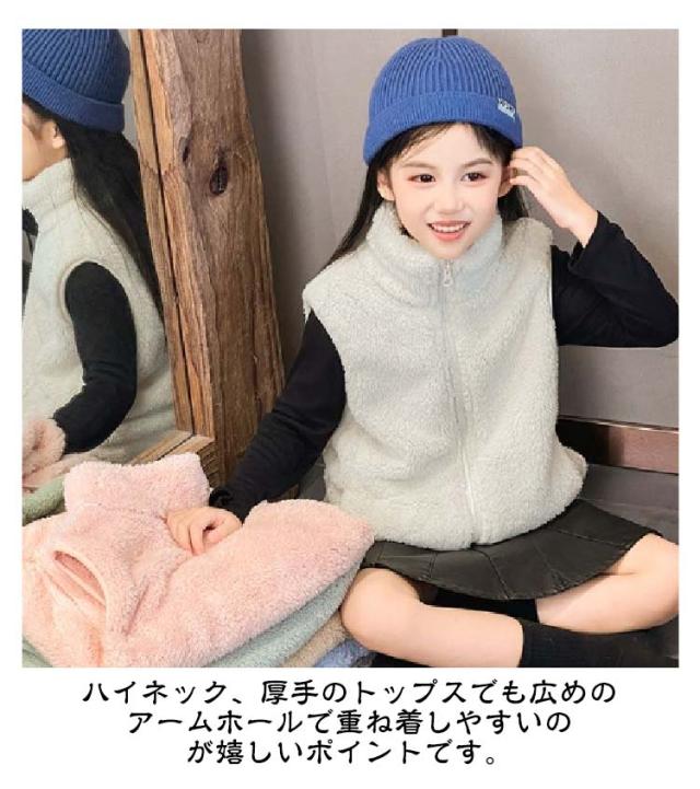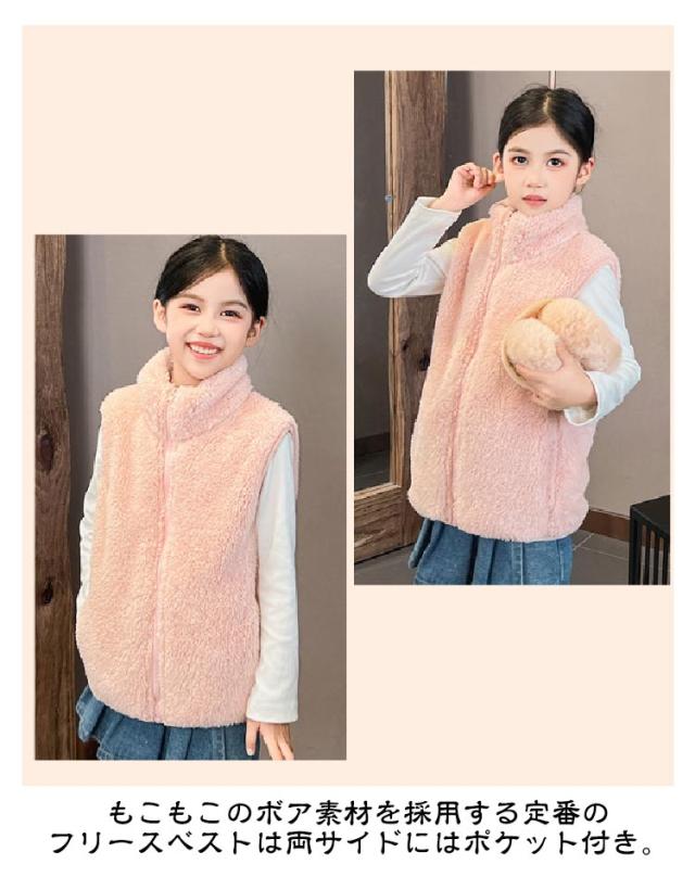 キッズ ボア 羽織 ボアベスト ベビー服 ジャケット アウター ベビーベスト ジュニア ベスト 冬 上着 裏起毛 女の子 防寒 暖かい ボア 秋 袖なし 羽織 子供服 男の子 もこもこ 軽量 ふわふわ ベスト トップス 部屋着 通園 通学