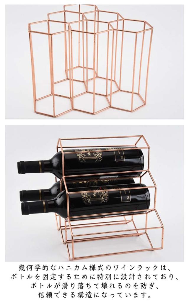 高級感 ワインラック ワイン収納 ゴールド ハニカム おしゃれ おしゃれ 6本収納 収納ラック 収納棚 インテリア ワインホルダー スチール ワイン収納棚 ワインラック ディスプレイ 丈夫 ワイン 人気 結婚祝い 引っ越し祝い ギフト プレゼント