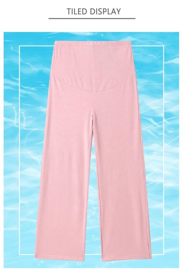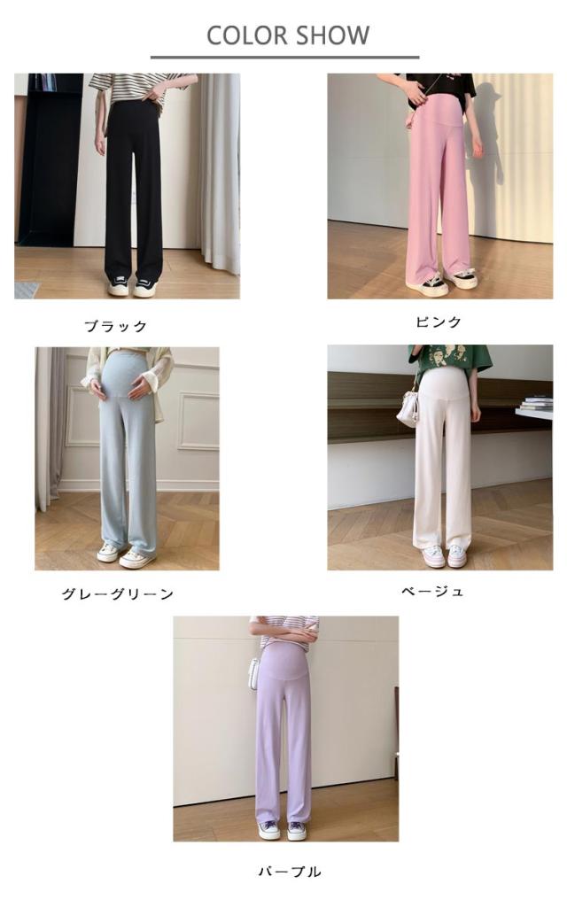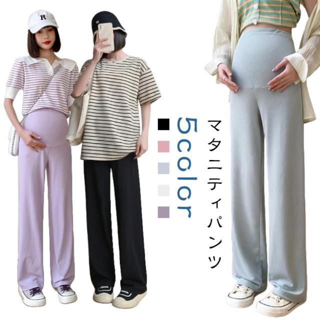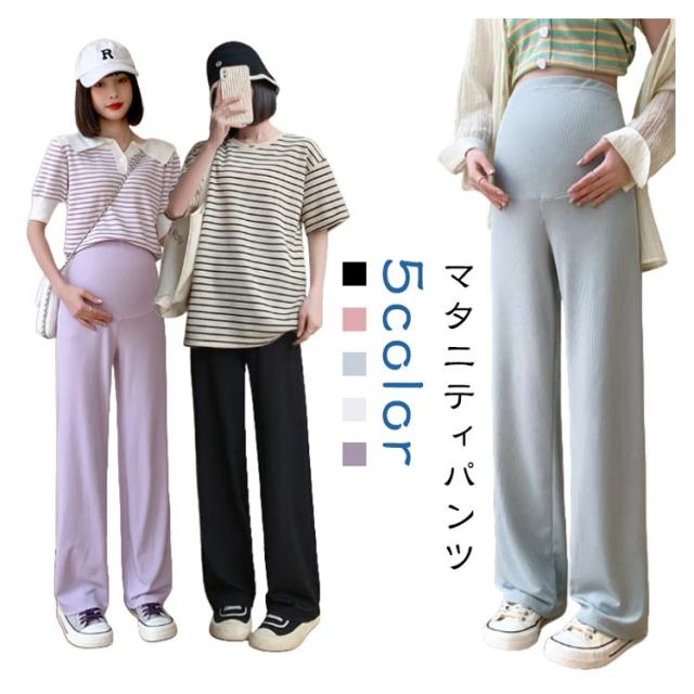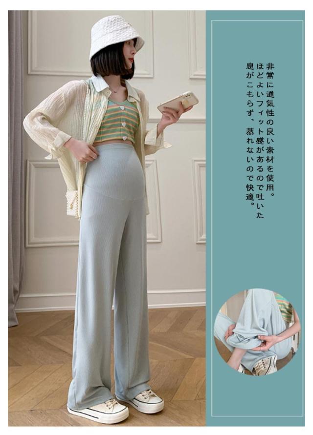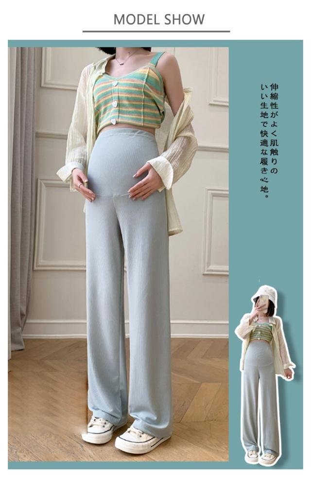 産前産後 薄手 リブ ウエスト調節可能 春夏秋 妊婦服 ズボン 長ズボン マタニティ パンツ マタニティウェア リブワイドパンツ 部屋着 ボトムス ゆったり ハイウエスト マタニティ 無地 ブラック オフィス カジュアル ベージュ