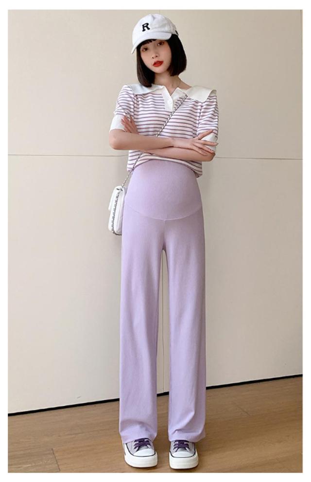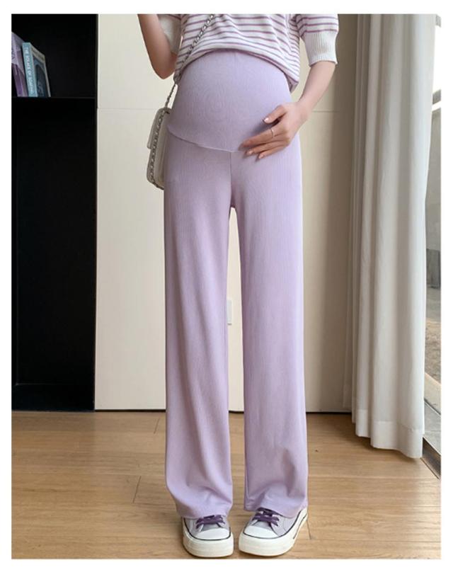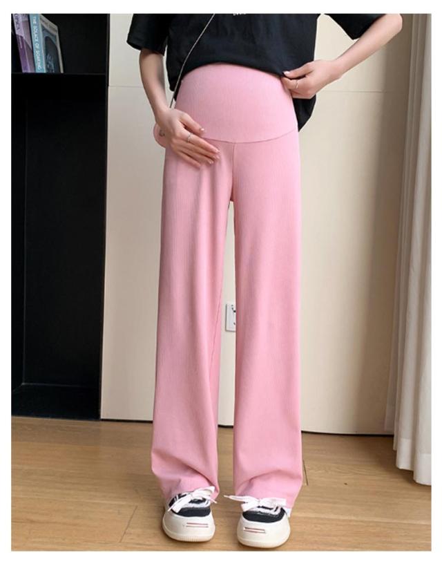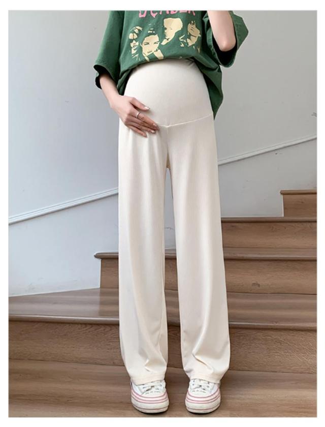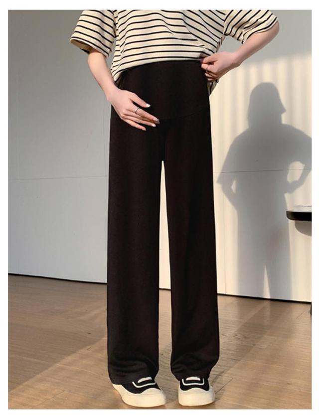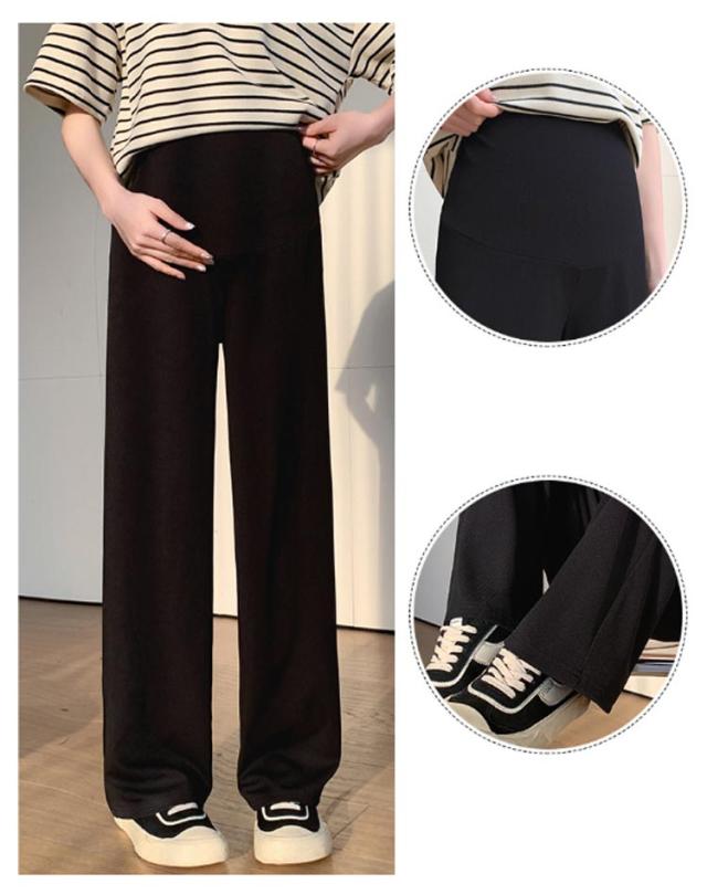 産前産後 薄手 リブ ウエスト調節可能 春夏秋 妊婦服 ズボン 長ズボン マタニティ パンツ マタニティウェア リブワイドパンツ 部屋着 ボトムス ゆったり ハイウエスト マタニティ 無地 ブラック オフィス カジュアル ベージュ