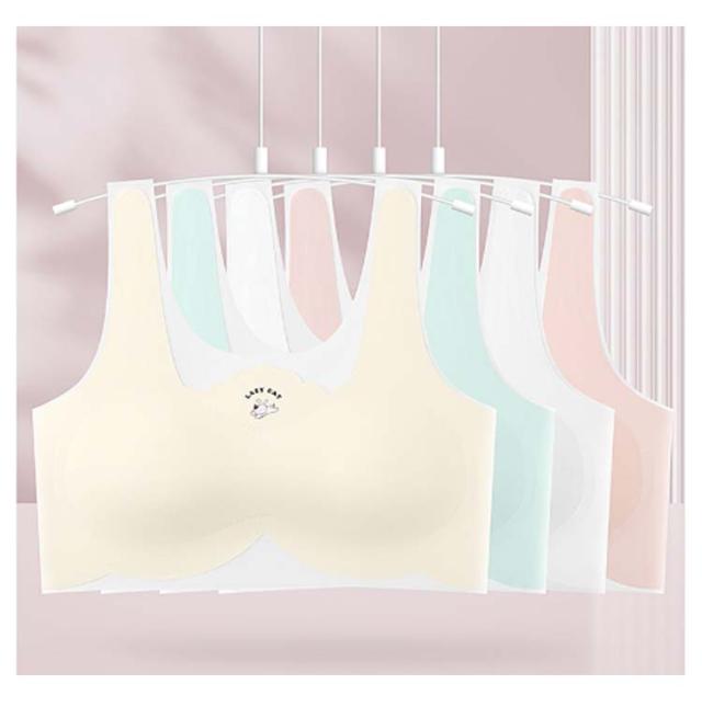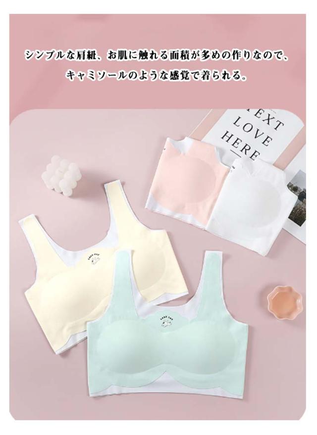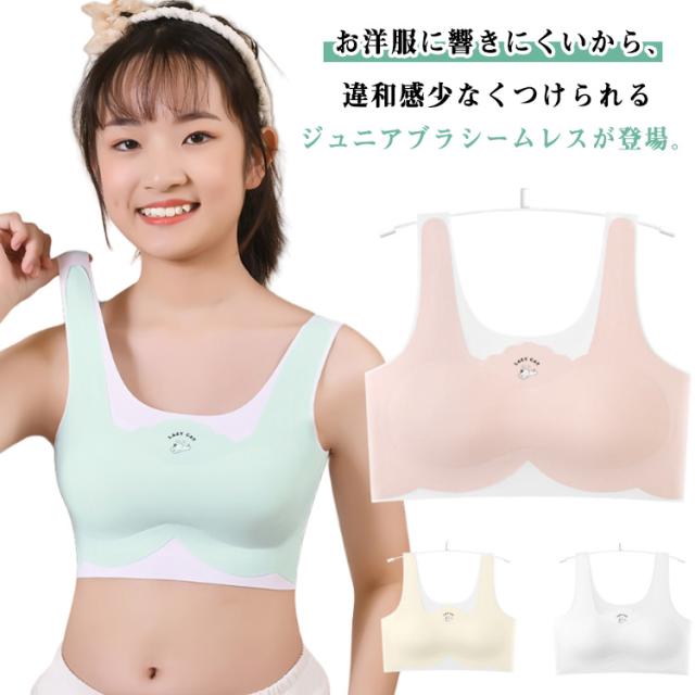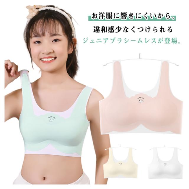 | バストが気になり始めた女の子に〜ノンワイヤーでカップ付きジュニアブラジャー。 ノンワイヤーで締め付け感が少なく、ふくらみ始めるバストに最適の柔らかい肌あたり。 ずり落ちがしにくく、肩が痛くなりにくい幅広の肩紐。たくさん動いてもズレにくい。 バストをふんわり包んで、成長期のバストをやさしくサポートします。 アンダー部分は幅広設計。くるっとめくれ上がりしにくく、しっかりホールド。 シンプルなデザインなので服に響きにくい。洋服や体操服を着た時も自然。安心して着用できる。 | |