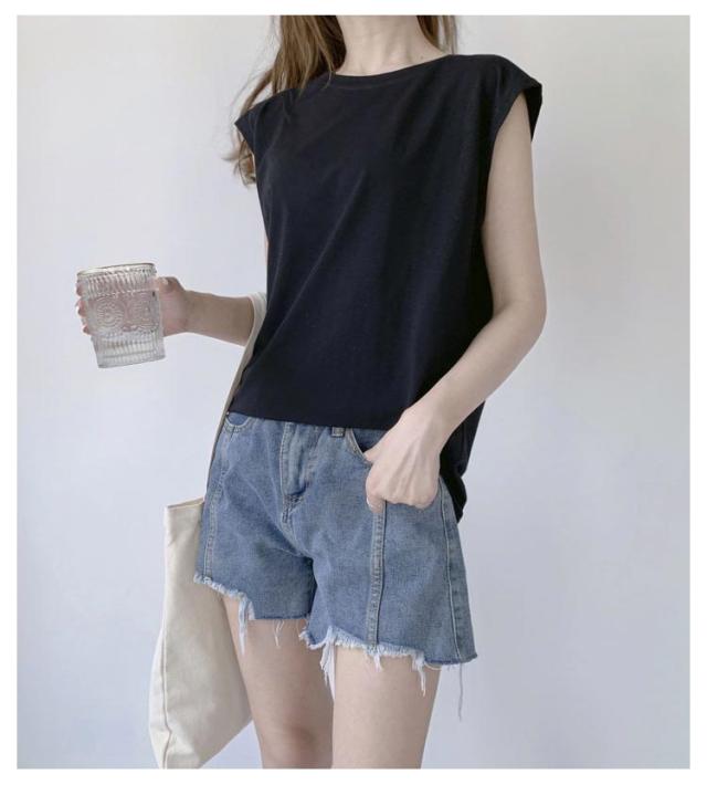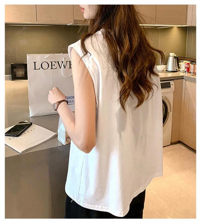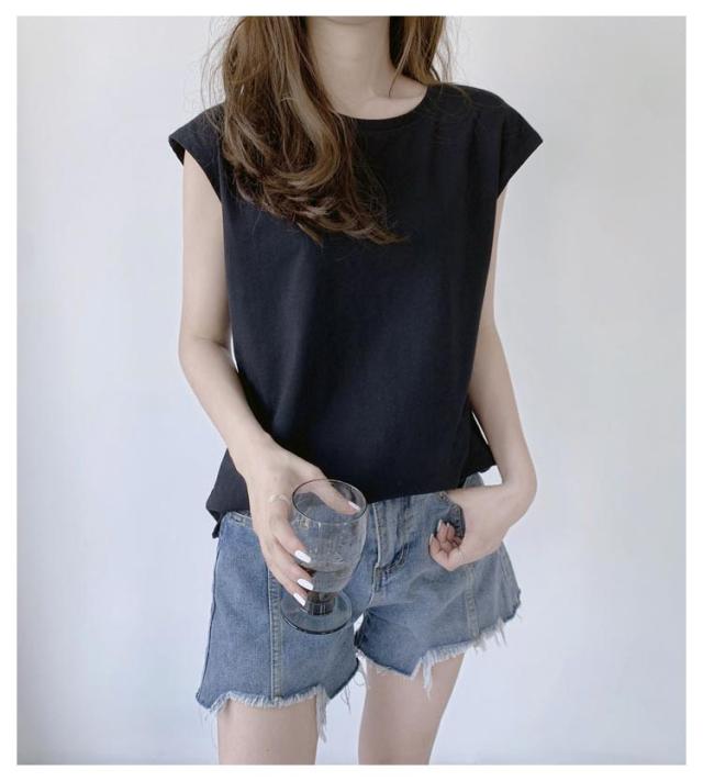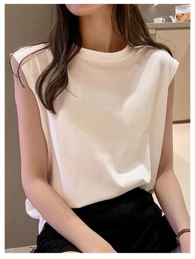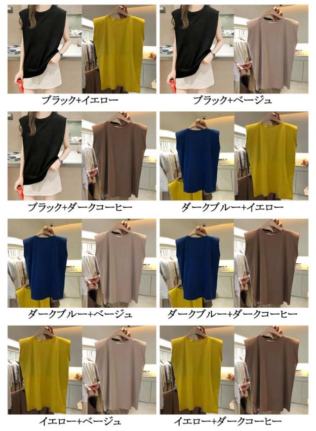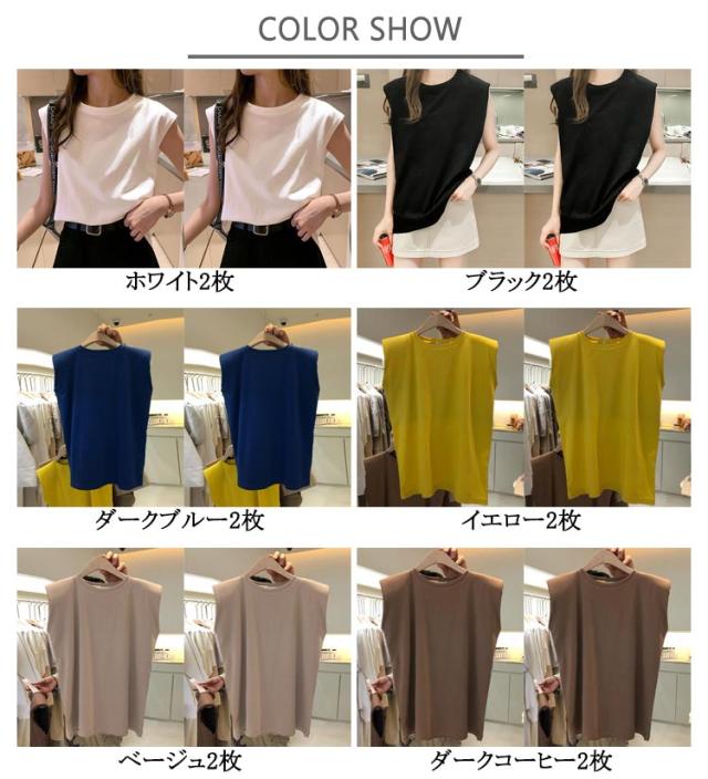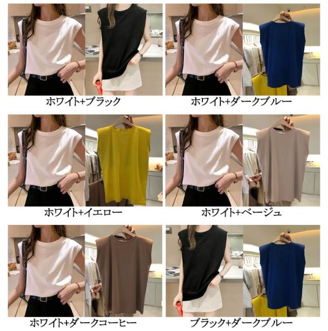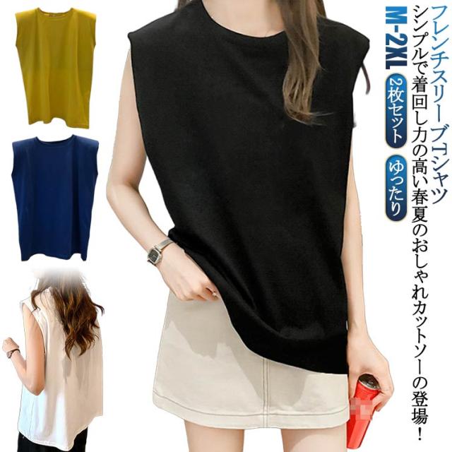 【2枚セット】フレンチスリーブ Tシャツ 袖なし 無地 レディース Tシャツ キャミソール プルオーバー ノースリーブ 可愛い ロンT クルーネック トップス タンクトップ ロングTシャツ 肌触りいい 【2枚セット】フレンチスリーブ UVカット カットソー 送料無料