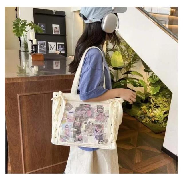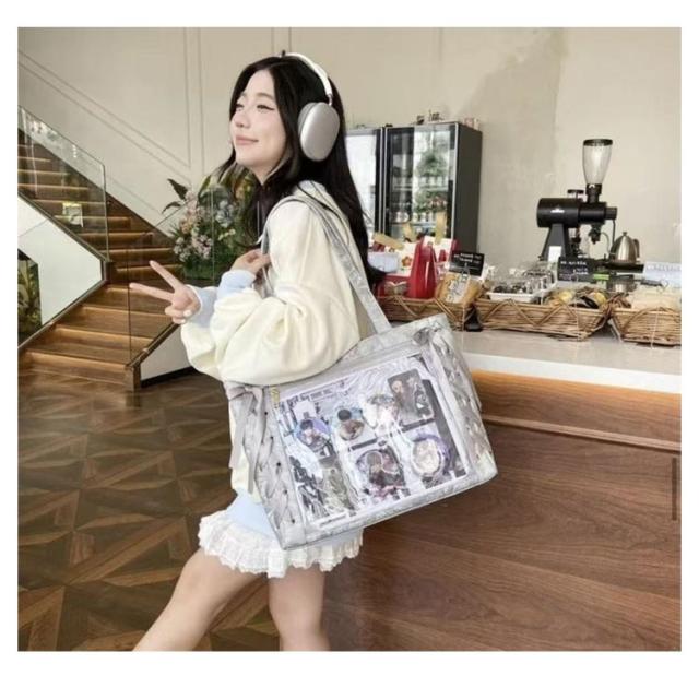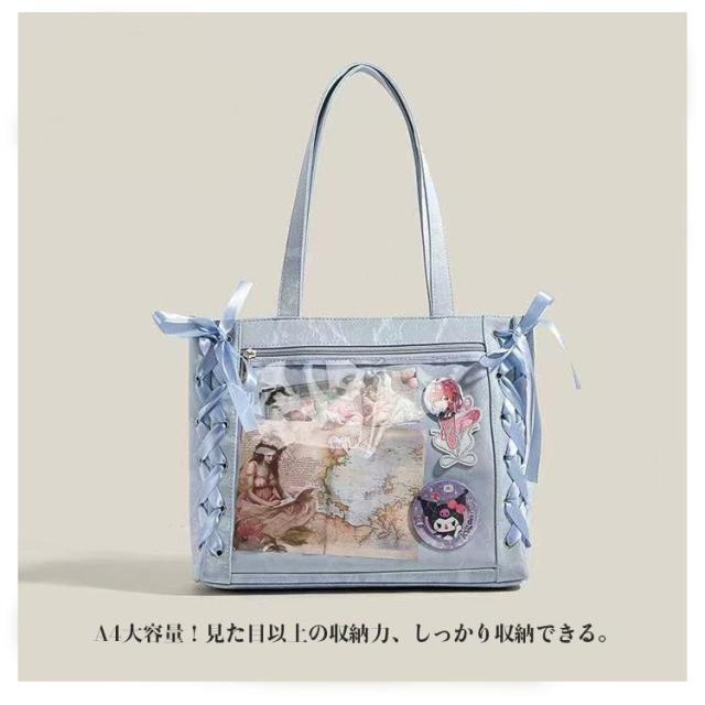 2way 透明 バッグ 痛バッグ レースアップ おしゃれ ショルダー ぬいぐるみ 痛バッグ クリアバッグ A4 バッグ ショルダーバッグ 推し活 大きめ トートバッグ 透明窓 2way ビニール 缶バッジ 見せる 大容量 見せバッグ 軽量 子供 学生鞄 学生バッグ 学生かばん 推しバッグ