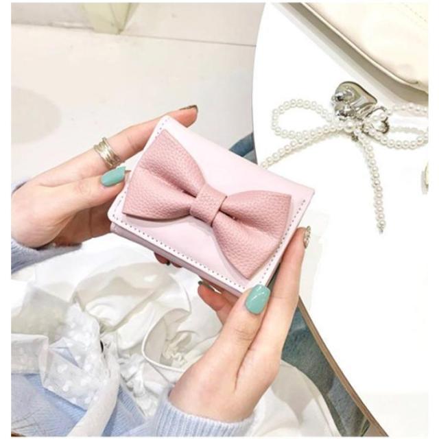 リボン 女性 ミニ財布 三つ折り財布 コンパクト レディース ガーリー 財布 女子 ガーリー 三つ折り 小さめ ミニ カードケース 財布 軽い 折りたたみ おしゃれ 韓国 かわいい ピンク グリーン パープル ブルー