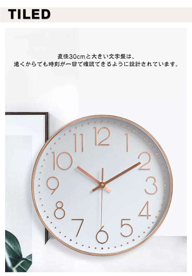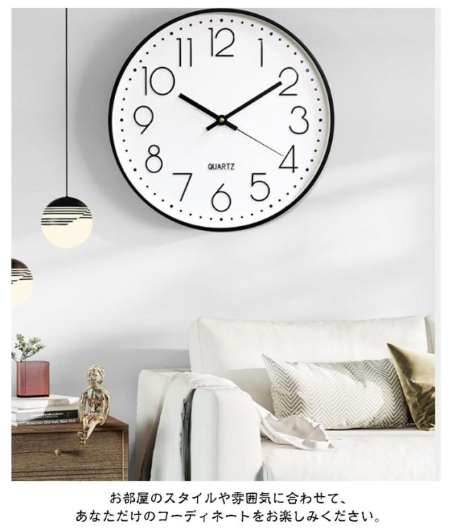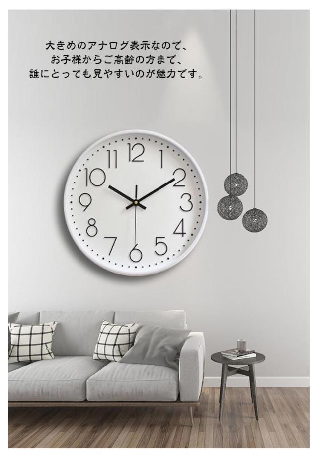 | 【壁掛け時計】静音設計で癒しの空間を演出! 静音設計と北欧テイストのモダンなデザインが特徴です。カチカチ音 しない「無音」の連続秒針なので、寝室やリビング、事務所などの静かな環境にぴったり。心地よい空間で、ゆったりとした時間をお過ごしいただけます。 大きくて見やすい!どんなお部屋にも馴染むデザイン 直径30cmと大きい文字盤は、遠くからでも時刻が一目で確認できるように設計されています。 大きめのアナログ表示なので、お子様からご高齢の方まで、誰にとっても見やすいのが魅力です。 インテリアに調和するおしゃれなデザインは、ホワイト、ブラック、ピンクゴールド、グレーなど20種類の豊富なカラー展開。 お部屋のスタイルや雰囲気に合わせて、あなただけのコーディネートをお楽しみください。 軽量・電池式で設置も簡単!レトロな雰囲気も 電池式なので、コンセントの位置を気にせず、お好きな場所に飾ることができます。 レトロな雰囲気も持ち合わせているため、どんなスタイルのインテリアにも馴染み、お部屋のアクセントになること間違いなし。 リビングや事務所など、さまざまな空間でご利用いただけます。 | |