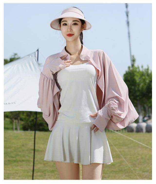 ゆったり ポンチョ ケープ ラッシュガード マント 冷感 UPF50+ UVカット 可愛い UV レディース 着る 指穴 ライトアウター ショート丈 長袖 日よけ カーディガン アームカバー パーカー 立ち襟 ボタン トップス 体型カバー ボレロ