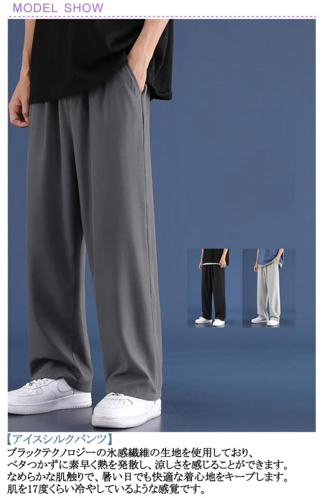 涼しい アイスシルクパンツ 夏用 2枚セット スラックス 冷感パンツ 2枚セット ずぼん イージーぱんつ 接触冷感 ズボン ストレートパンツ レディース ボトムス 大きいサイズ メンズ オフィスカジュアル ロングパンツ