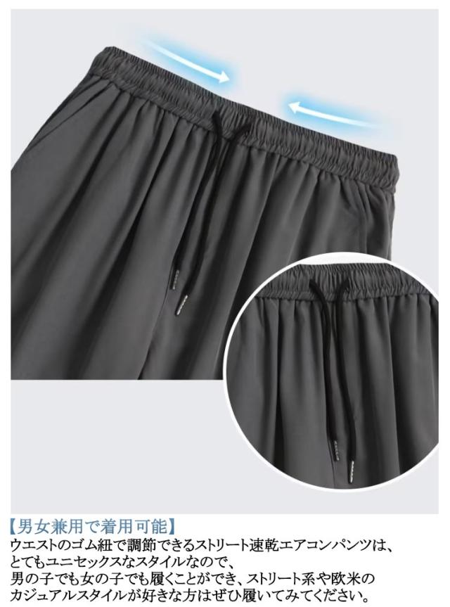 | 【アイスシルクパンツ】 ブラックテクノロジーの氷感繊維の生地を使用しており、ベタつかずに素早く熱を発散し、涼しさを感じることができます。 なめらかな肌触りで、暑い日でも快適な着心地をキープします。 肌を17度くらい冷やしているような感覚です。 【シンプルなデザイン】 カジュアルなトラウザーの最新作!ウエストゴム仕様で、コーディネートしやすいストレートシルエット。 摩耗や傷に強く、背を高く見せたり、スリムに見せたりすることができます。 また、通気性が良く、強い吸水速乾性があるので、常に体をドライに保ち、快適な履き心地を実現します。 【カジュアルズボン】 屋内だけではなく、水泳、バーベキュー、釣り、ゴルフ、キャンプ、ハイキングなどのアウトドアにもおすすめ。 通気性が良くて蒸し暑い季節も涼しく過ごせます。夏に普段着または作業着として様々な場面で使用できます。 【男女兼用で着用可能】 ウエストのゴム紐で調節できるストリート速乾エアコンパンツは、とてもユニセックスなスタイルなので、 男の子でも女の子でも履くことができ、ストリート系や欧米のカジュアルスタイルが好きな方はぜひ履いてみてください。 | |