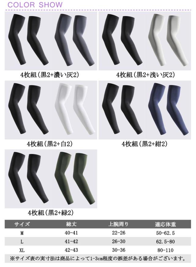日焼け対策 メンズ 自転車 指穴 メンズ ロング 大きいサイズ アームカバー 4枚組 UV 男用 アウトドア 冷感アームカバー スポーツ 接触冷感 ゴルフ 野球 UPF50+ 紫外線対策 UVカット ズレ落ち防止 滑り止め 軽量 薄手 フィット感
