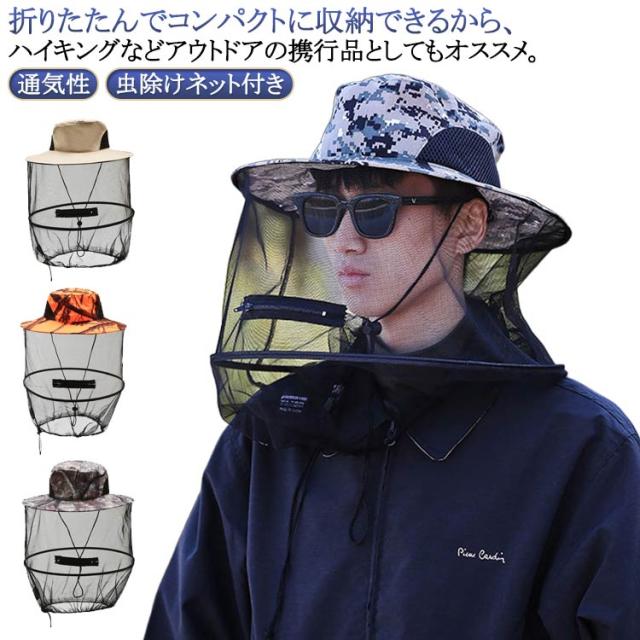 防虫ハット UVカット ハイキング 釣り用 農作業つば広 メンズ レディース 日よけ 虫除け 帽子 虫除け フィッシング サファリハット 通気性 アウトドア あご紐付き ガーデニング 園芸 登山 ネット付き 畑仕事 農園 紫外線対策