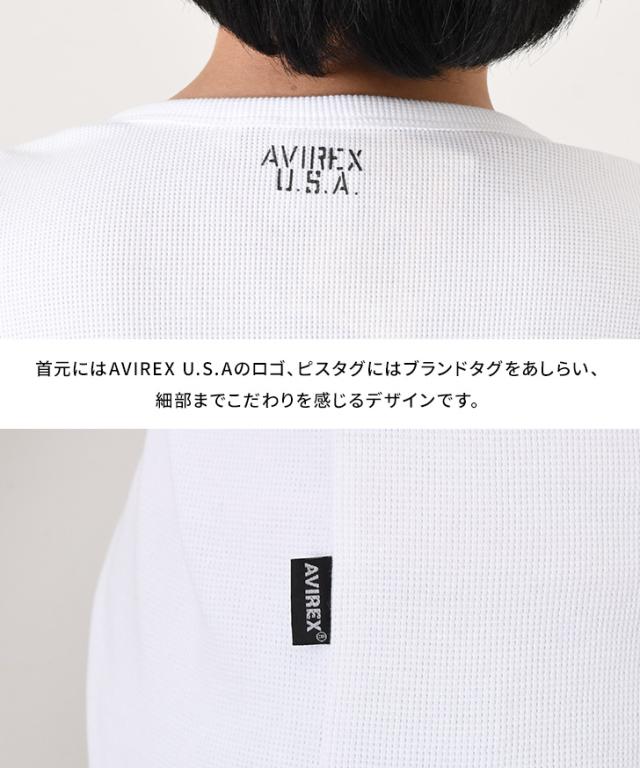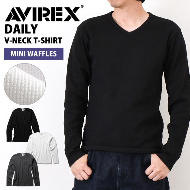 新作 AVIREX アヴィレックス デイリー ミニワッフル Vネック 長袖 Tシャツ メンズ ブランド 大きいサイズ トップス カットソー 抗菌 防臭 ロングスリーブ ワッフル サーマル 厚手 伸縮性 ストレッチ