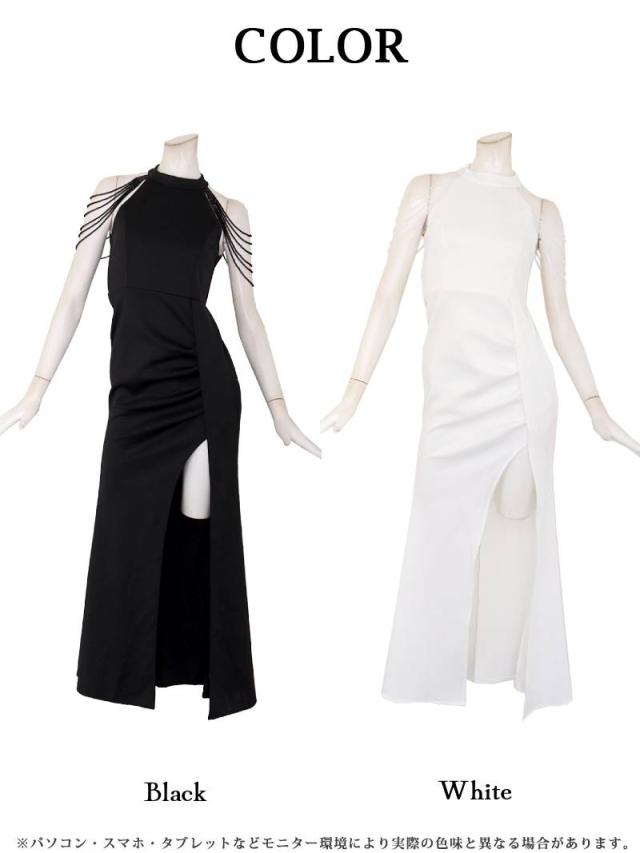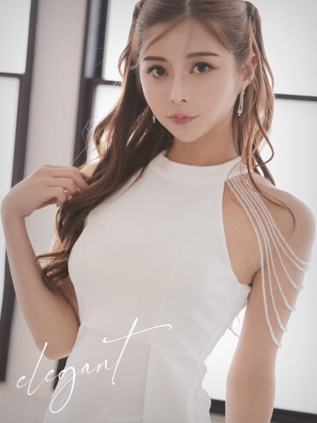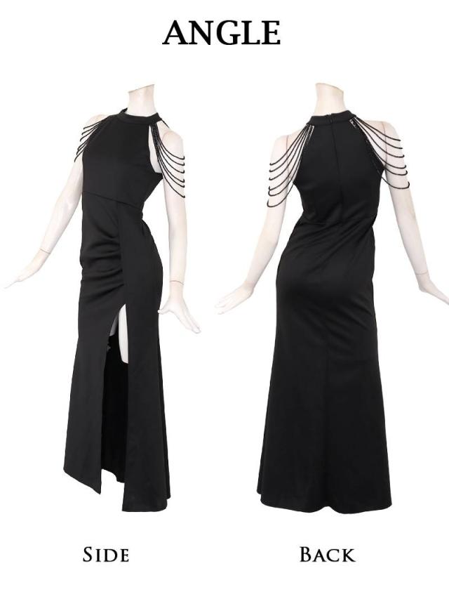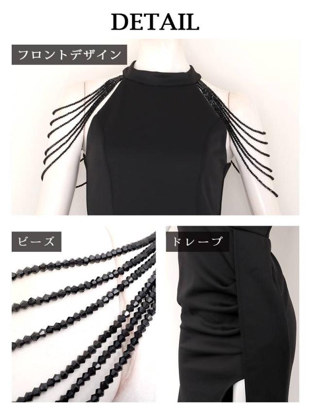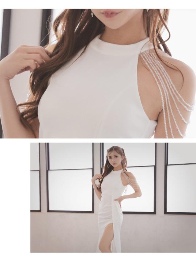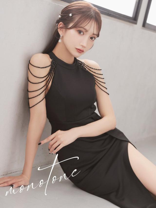 ☆肩のシャンデリアビーズが煌めき、顔周りを華やかに彩るキャバドレスです。
