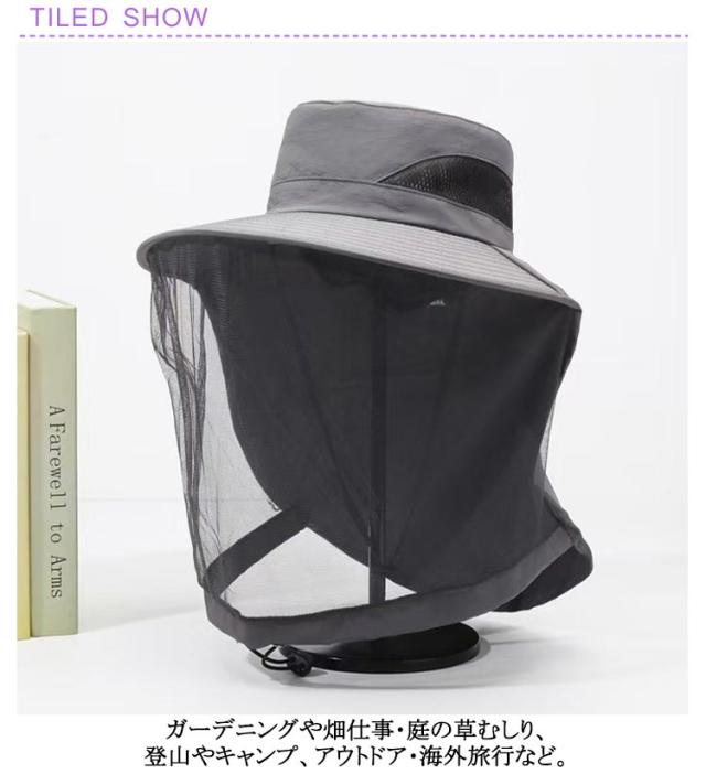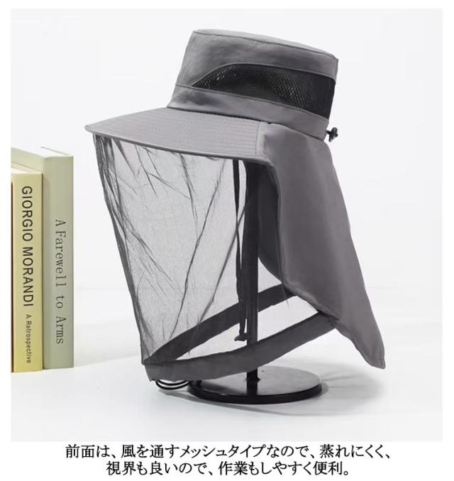 | 顔まわりのイヤな虫対策に。サッとかぶるだけの防虫ネット付き帽子 ガーデニングや畑仕事・庭の草むしり、登山やキャンプ、アウトドア・海外旅行など ひもで調節する事ができ、襟口もしぼれるので、襟もとからの虫の侵入も防いでくれます。 前面は、風を通すメッシュタイプなので、蒸れにくく、視界も良いので、作業もしやすく便利。 UVカット率98%、幅が約10cmのつばと後面の日よけカバーで顔まわりと首の後ろを紫外線からしっかりガード。 手洗いも可能なので、汗をかいたり、汚れたりしても安心。お手入れも簡単。 男性用・女性用(メンズ・レディース)兼用タイプ。 虫の気になるいろいろなシーンで大活躍してくれる防虫帽子(ハエよけ帽子)。 | |