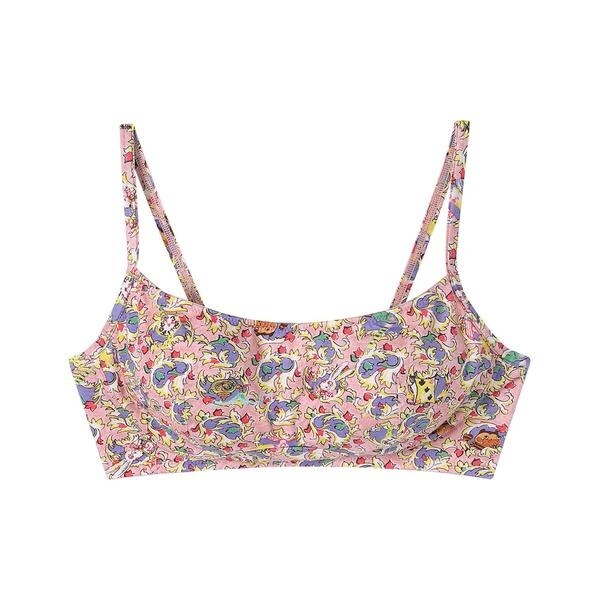 ・身生地に、伸びがよくやわらかいベア天竺素材を使用・薄手のストレッチ性のある生地で、軽やかなつけごこち・「不思議の国のティ−タイム」に集まる仲間たちが鏡の中からのぞいている様子を表現した柄・ストラップも同素材で肩の肌あたりがやわらか・テンセル□ブランド繊維を使用した、風合いがよく、伸縮性のある天竺素材・テンセル□ブランド繊維は適切に管理された森林の木材(パルプ)から生まれた繊維・パッド受けあり/パッドあり(パッドは取りはずし可能)※TENCEL□及びテンセル□は、Lenzing AGの商標です●詳細情報ワイヤーなしパッド受けあり/パッドあり※お洗濯は、必ず「取扱い表示」にしたがってください。