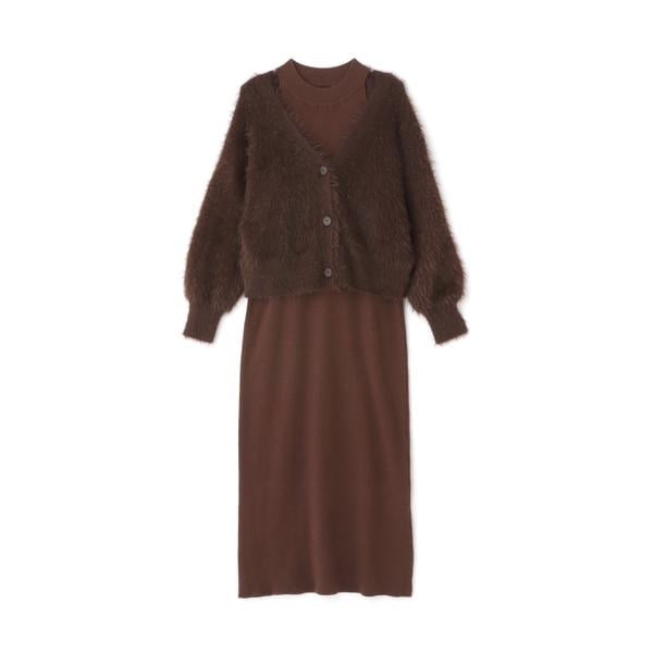 シャギーカーデセットニットワンピース