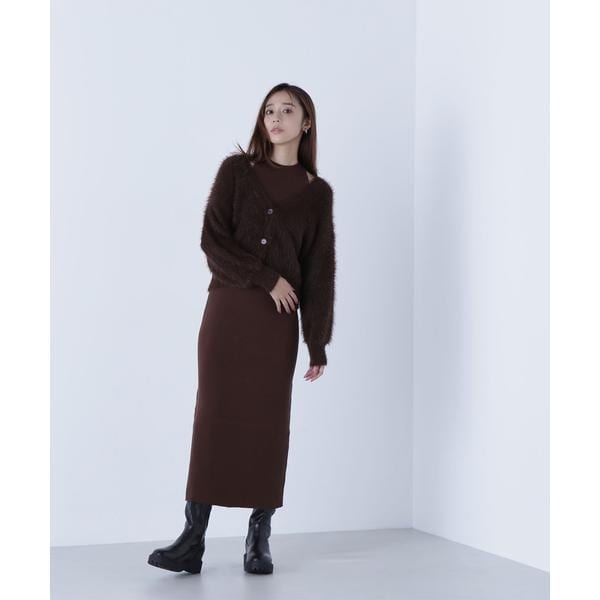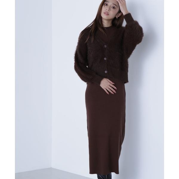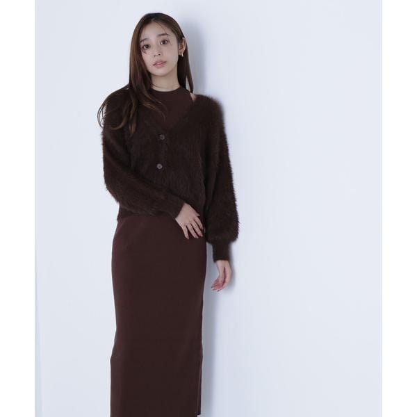 アメリカンスリーブのリブニットワンピースと、ゆるっとしたシャギーカーディガンがSETになったアイテム。ざっくりとしたシャギーカーディガンは、後ろに抜け感を出せるサイズ感です。2点セットで抜け感のある肌見せが叶うレイヤードデザイン。それぞれ単品使いもできるのでコーディネートの幅が広がります。<素材>カーディガンは毛足のあるシャギー素材、ワンピースはすっきりとしたリブニットを使用しています。<詳細>仕様・カーディガンは前ボタン、ワンピースは開閉なし裏地・なし透け感・なし / 光沢・なし / 伸縮性・あり生地の厚さ・普通※モデルの着用画像の場合、光の当たり具合により、実際の色味と異なって見えることがございます。色味は、商品単体の画像をご参照ください。