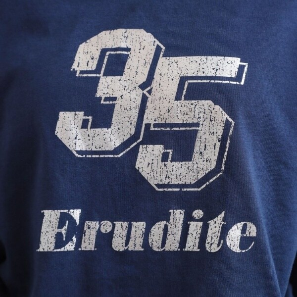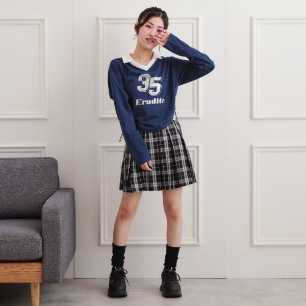 フロントの箔ナンバリングプリントが目を引くトレンドトップス。