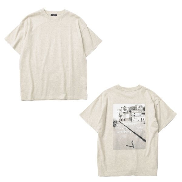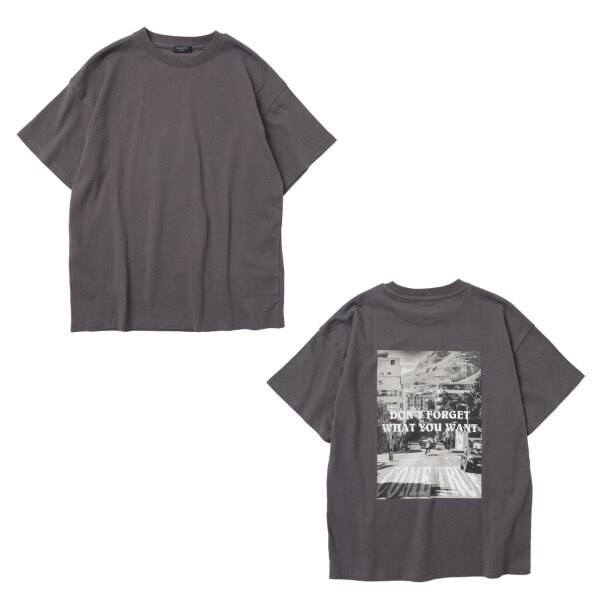 バックのフォトプリントがストリート風で、トレンド感あるデザイン。