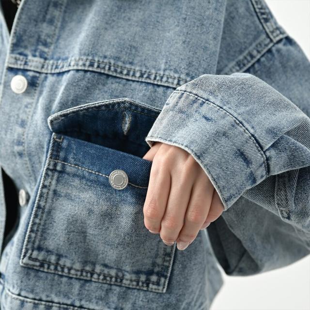 ・再生利用可能な糸を使用したリサイクルデニム素材のショートGジャン
