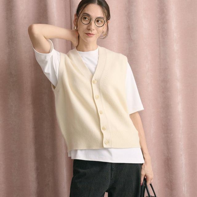 ボクシーなリラックスシルエットが抜け感を与えるVネックニットベスト。