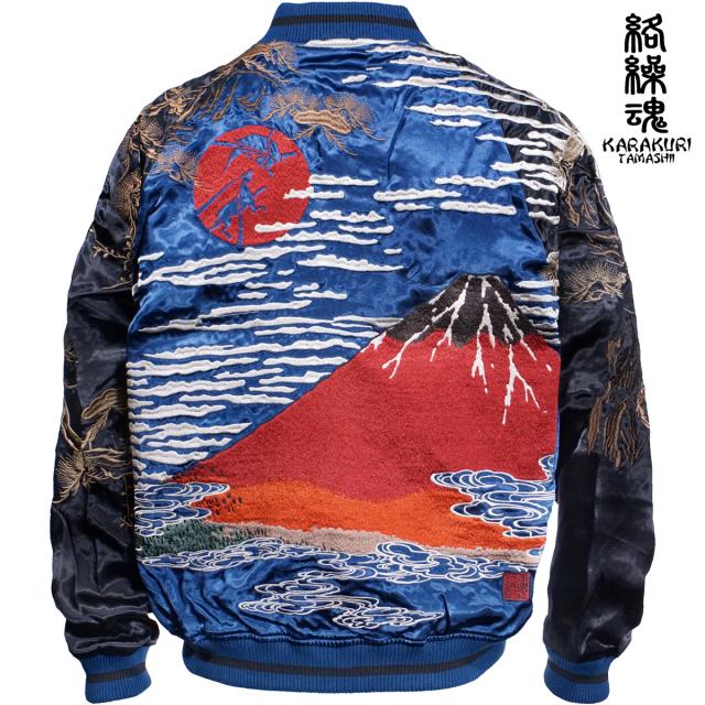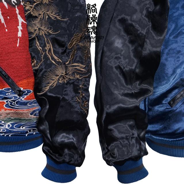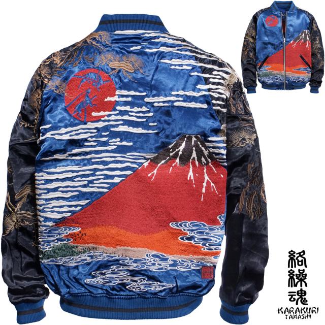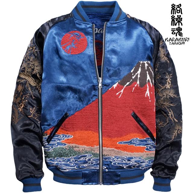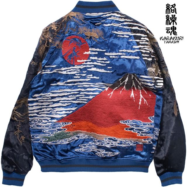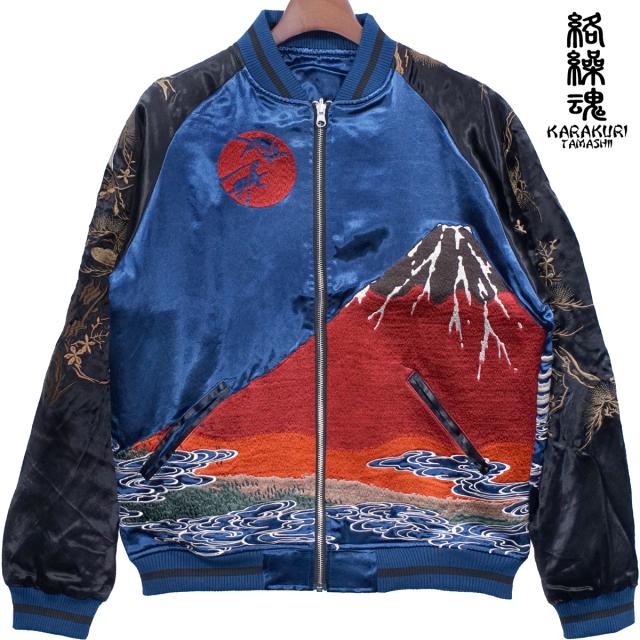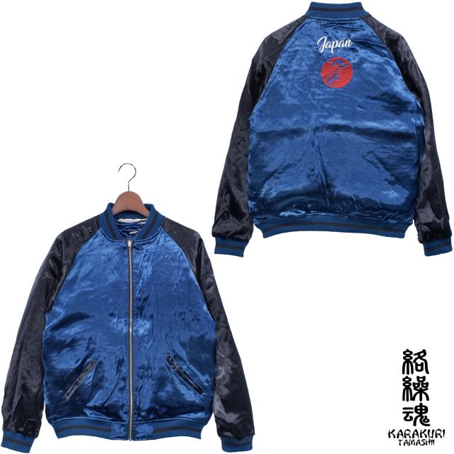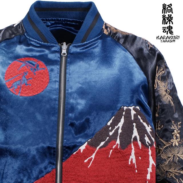 からくり魂 絡繰魂 粋 スカジャン 和柄 メンズ レディース ユニセックス リバーシブル 刺繍 フルジップ(ブルー青ブラック黒) 253062