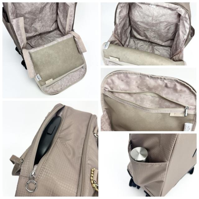 外側:フロントポケット(クッション付きポケット×2)、サイドオープンポケット×2