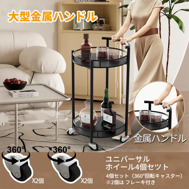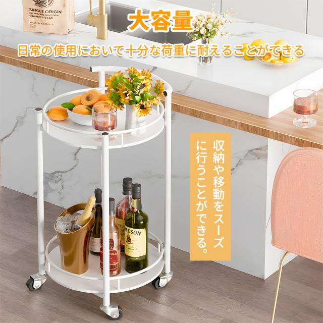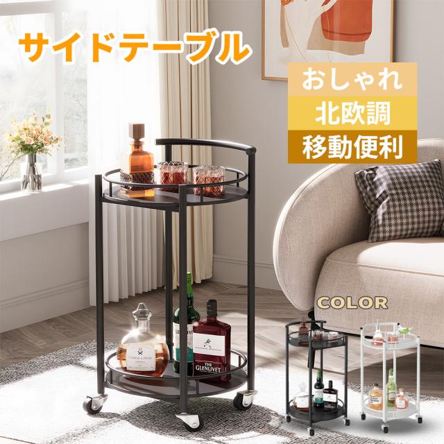 サイドテーブル 収納ワゴン キャスター付き 収納カート サイドデスク 360°回転式 2段 キッチンワゴン 移動式 回転トレイワゴン 棚 テーブル 収納ラック 収納 おしゃれ 省スペース
