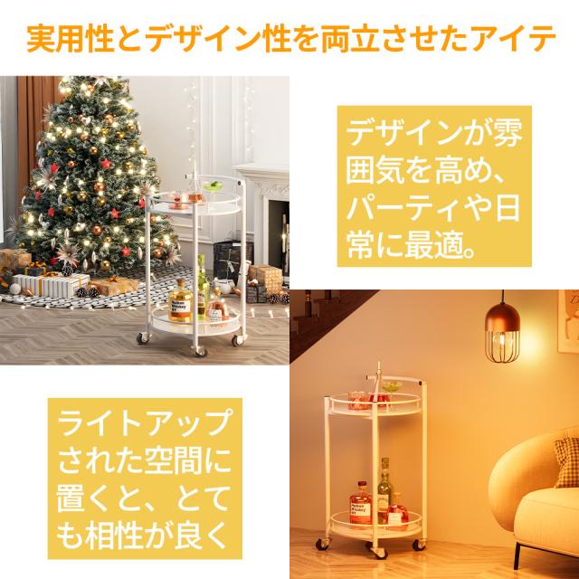 【多様な活用場所】このサイドテーブルは、収納や移動が簡単にできる便利なアイテムです。キッチンでは、食材や調味料、小型の調理器具を手元にすっきりと整理できます。バスルームでは、パーソナルケア用品やキャンドルなどの必需品を収納し、インテリアとしても活躍します。