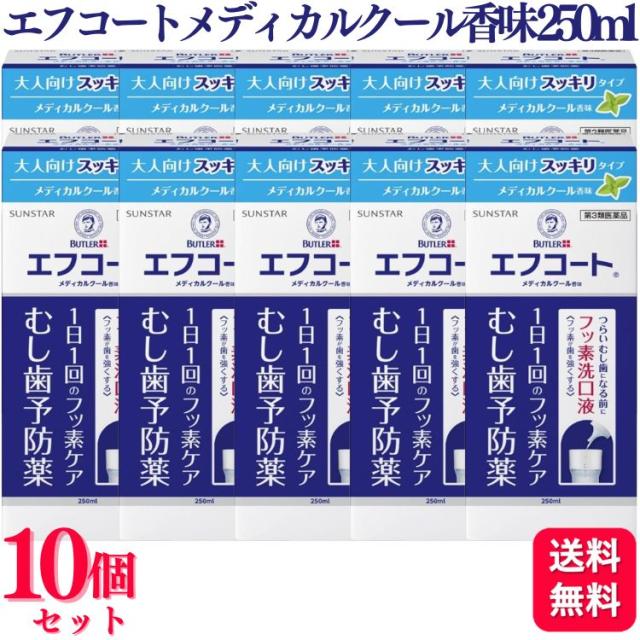 【第3類医薬品】【10個セット】 サンスター エフコート メディカルクール香味 250ml フッ素 うがい フッ素ケア フッ素 フッ素ケア フッ素洗口液 虫歯予防 メディカルクール すっきり 大人向け うがい 液体 フッ化ナトリウム 送料無料