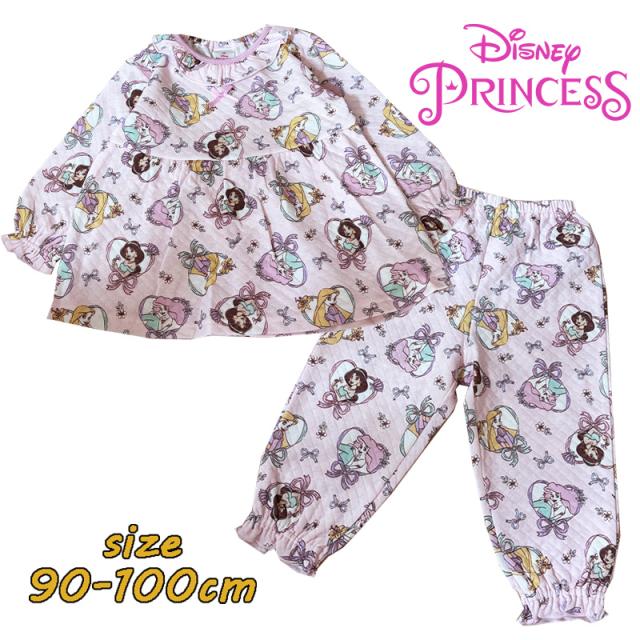 1点までメール便送料無料 ディズニープリンセス アリエル/ラプンツェル/ジャスミン 総柄 ベビー服 ダイヤキルト 長袖パジャマ 215104705-10
