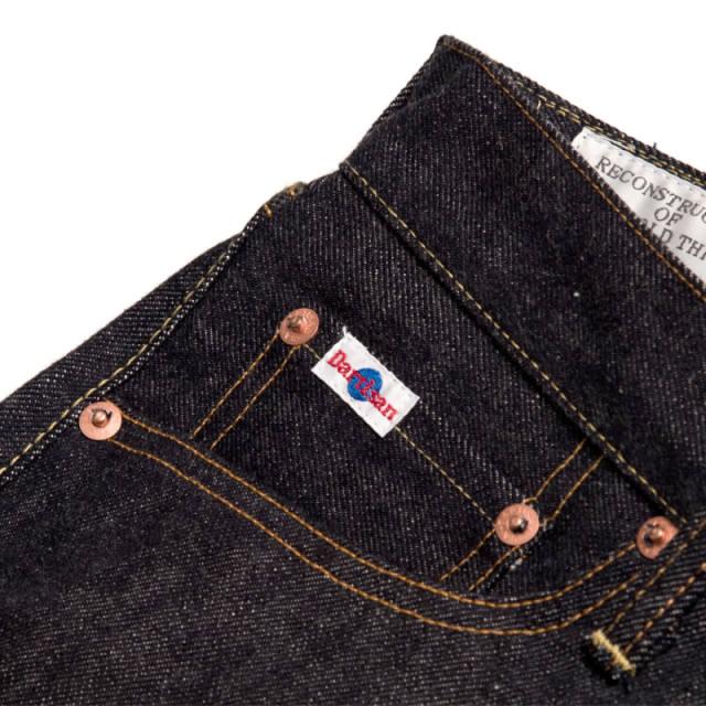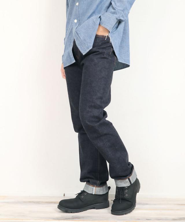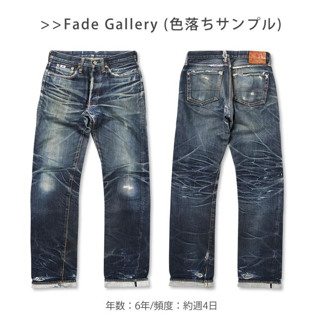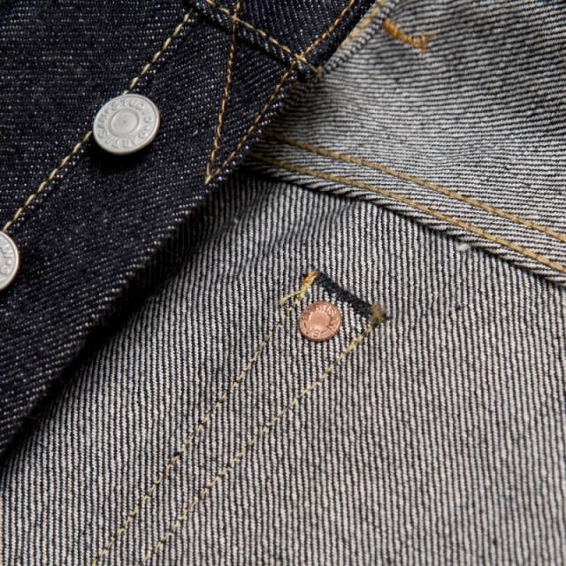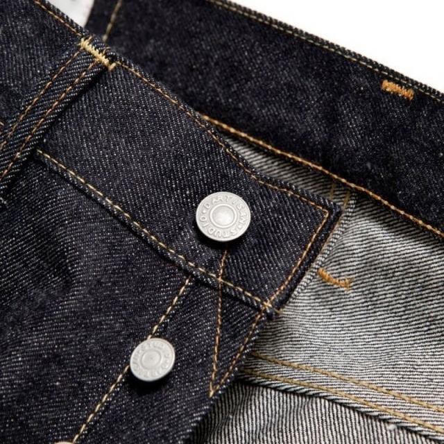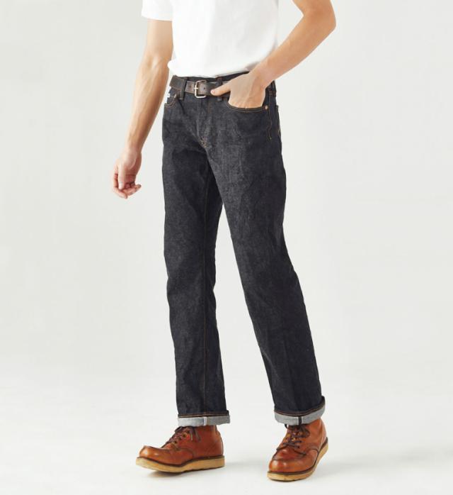 生地には防縮加工などを施さない「生機(キバタ)」の状態を採用することで、1950年代のヴィンテージジーンズさながらの自然なねじれやムラ感を楽しめ、濃色インディゴの深みある色合いは穿き込むほどに美しい経年変化を見せ、ヒゲやアタリがしっかりと刻まれていくため、自分だけの色落ちを育てられるのも大きな魅力となっています。