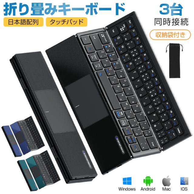 Bluetooth キーボード 折りたたみ 日本語配列 iPad ワイヤレスキーボード タッチパッド付き ブルートゥース キーボード iOS Android Windows Mac iPhone 小型 Type-C充電式 収納袋付き タブレット マルチペアリング 軽量 薄型 在宅勤務 Ewin 送料無料
