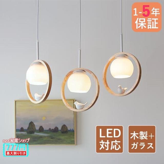 ペンダントライト 和風 ガラス 木製 おしゃれ LED電球 丸型 木目調 小鳥 北欧 天井照明器具 子供部屋 工事不要 玄関 リビング ダイニング キッチン 吊り下げ照明