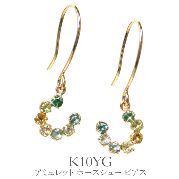 マルチカラー ホースシュー 馬蹄 フック ピアス K10YG グリーンクォーツ ペリドット シトリン ハニークォーツ ブルートパーズ スカイブルートパーズ ロンドンブルートパーズ 10金 10k イエロー ゴールド 揺れるピアス
