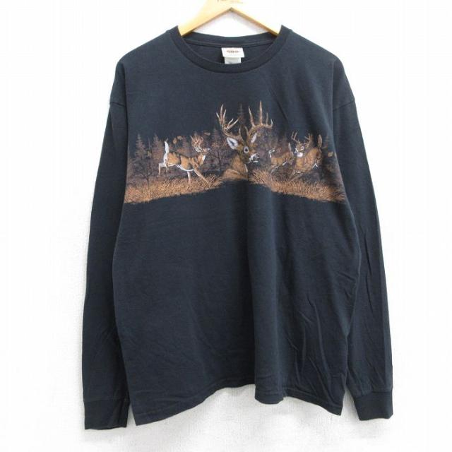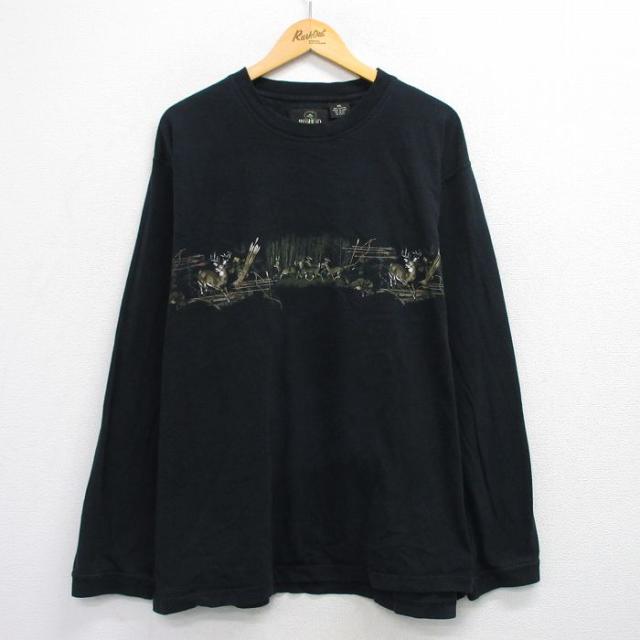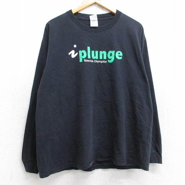 【商品名】 XL★古着 長袖 ビンテージ Tシャツ メンズ 00年代 00s ポーラーベアープランジ 企業広告 白クマ コットン クルーネック 黒