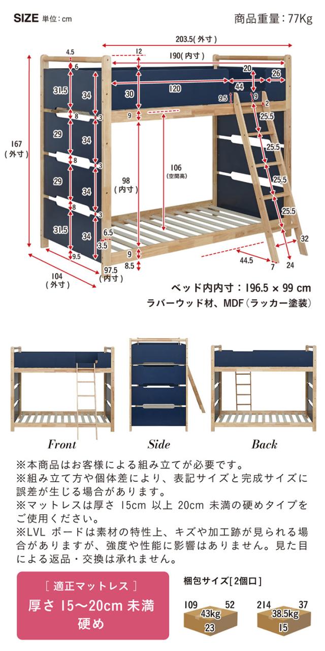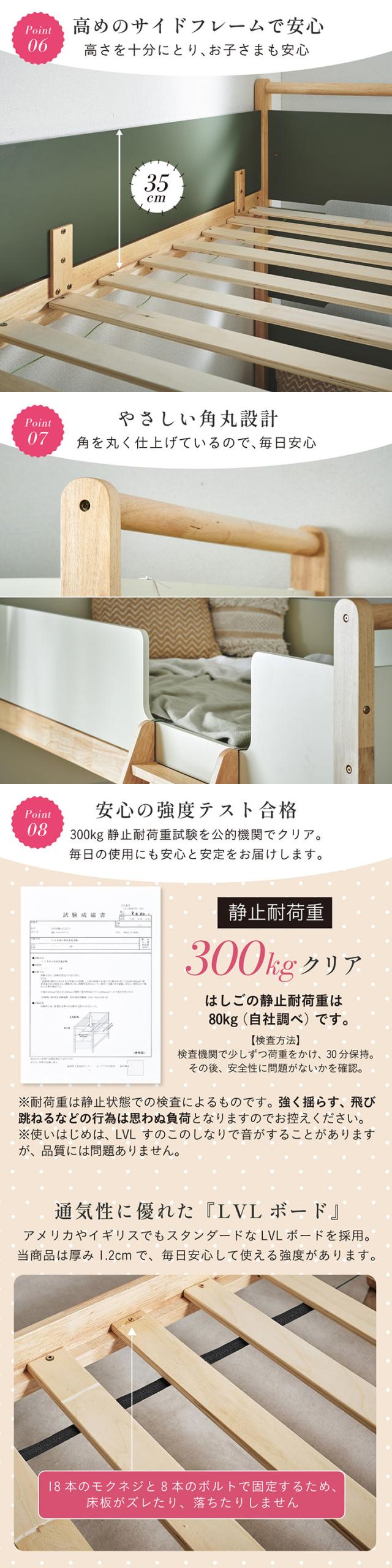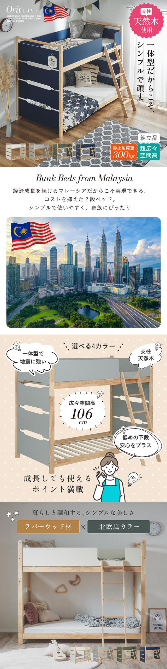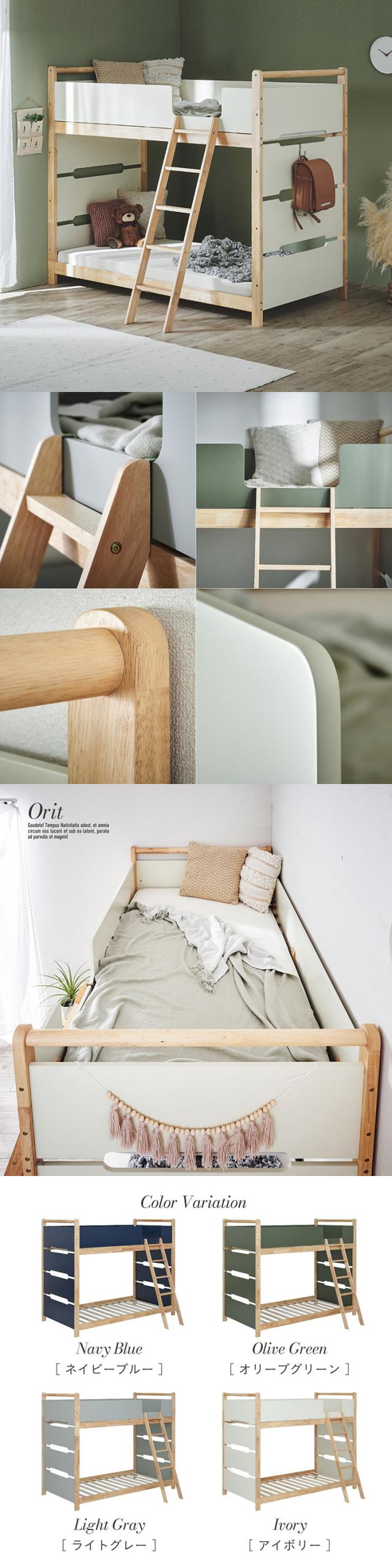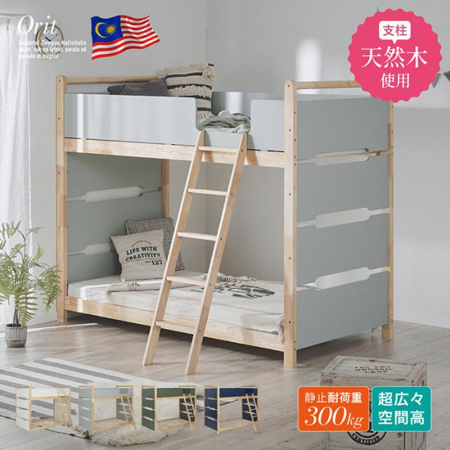 二段ベッド 2段ベッド 木製 天然木 シンプル コンパクト おしゃれ 耐震仕様 一体型 頑丈 大人用 子供用 収納付き 二段ベット 2段ベット すのこベッド 北欧風 安全設計 耐荷重300kg 新生活 Orit(オリト) 4色対応